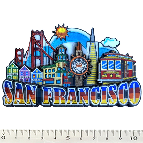 Egayez votre réfrigérateur avec ce magnet en bois et en relief de San Francisco. Les dimensions sont les suivantes: 10,5 cms x 6,5 cms.